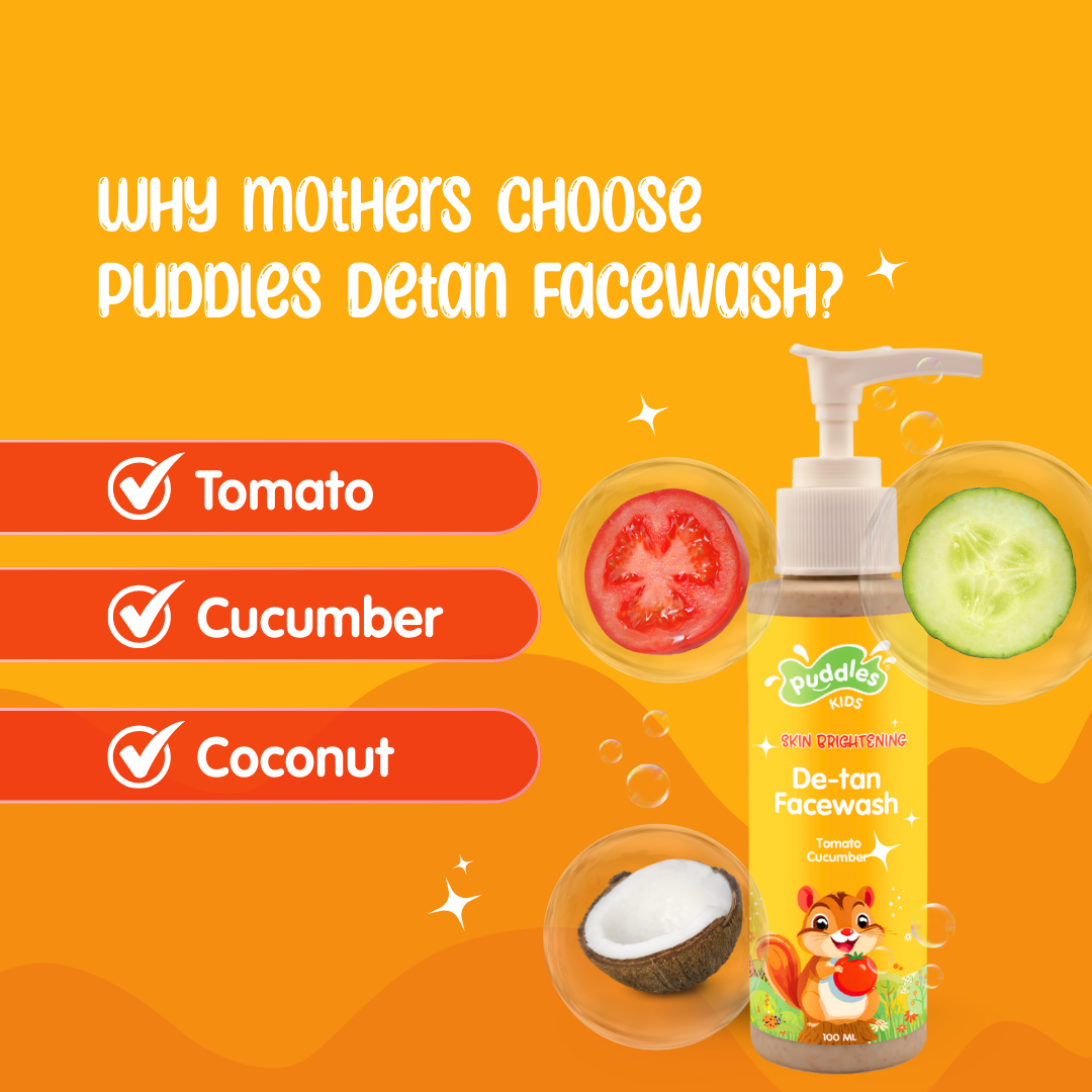 • Puddles Kids Detan Facewash- Mildly cleanses, removes dirt and tan, and leaves skin refreshed and bright.