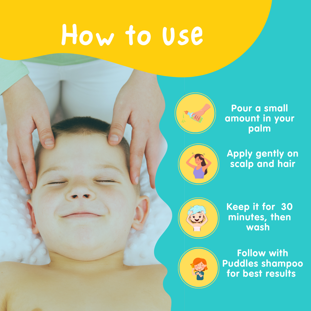 Nourish your child’s hair the organic way with Puddles Organic Hair Oil – a gentle, non-sticky hair oil made with 5 powerful organic ingredients: Flaxseed, Hibiscus, Castor, Jojoba & Olive Oils. Specially designed as a hair oil for hair growth, it strengthens roots, soothes the scalp, and keeps hair soft and manageable.