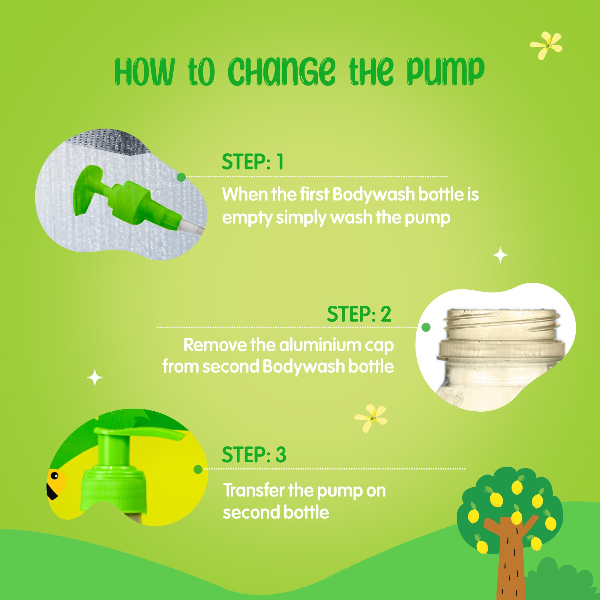 The “fresh fill” option for Tangy Candy Bodywash offers a convenient and sustainable way to keep your child’s favorite Bodywash stocked. You receive two fully filled bottles: one with a bodywash pump and the other with a zero-plastic, highly recyclable aluminum cap. Once the first bottle is empty, simply wash the pump and transfer it to the second bottle. No mess, no fuss—just an easy, spill-free switch that even your child can do. It’s a great way to teach them about sustainability and the small steps we can all take to help the planet.