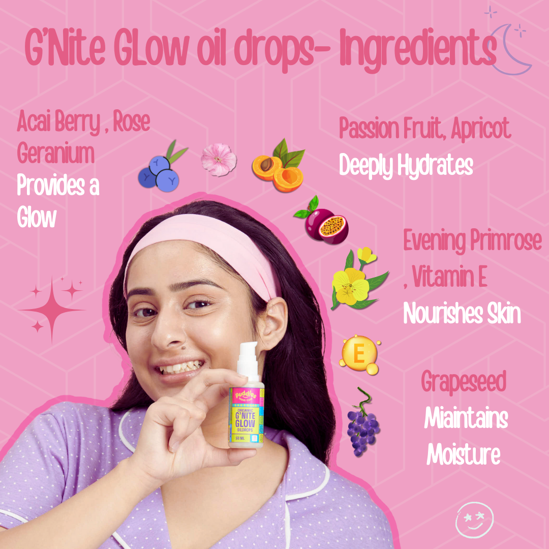 Teens G’nite Glow Oil Drops: End your day with this nourishing oil that works its magic overnight, leaving your skin soft, glowing, and ready for the next day! 🌙