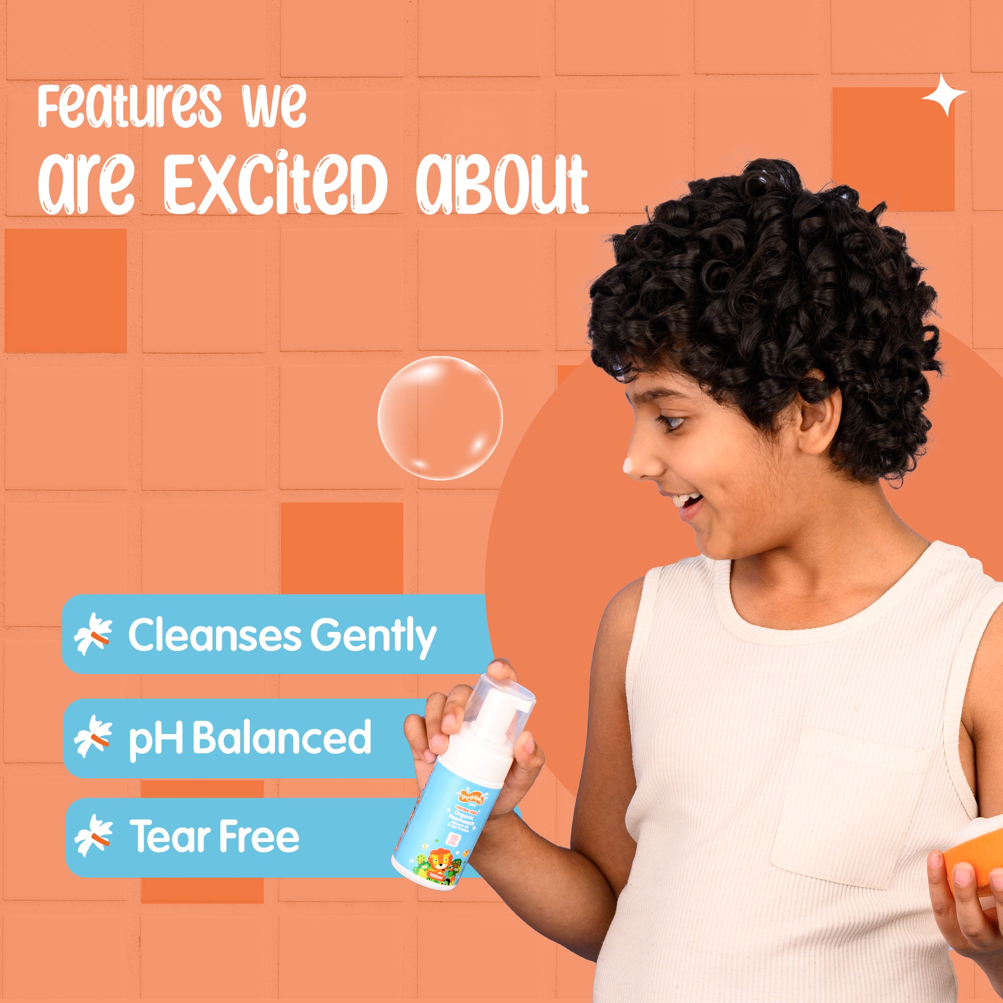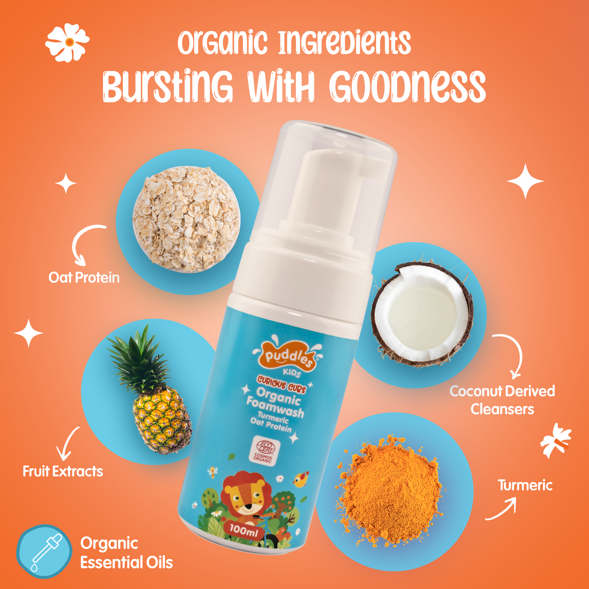 Puddles Kids Organic Foaming Body Wash | Curious Cubs Foam Body Wash – Chemical-Free, Paraben-Free, Sulfate-Free, Vegan – 100ml