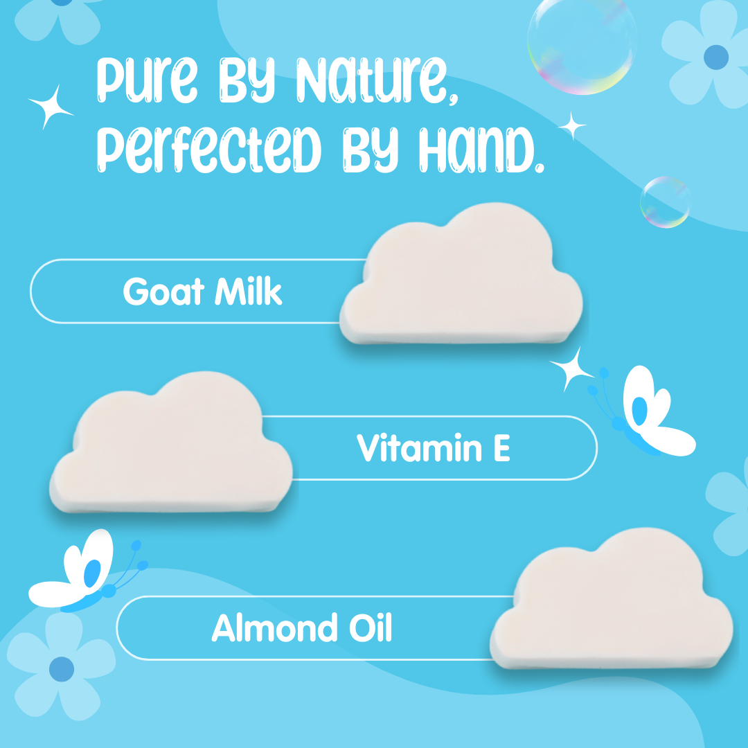 Make bath time fun and nourishing with Puddles Cloud Soap, specially designed for kids aged 2 years and above. This cute cloud-shaped soap is enriched with Goat Milk, Vitamin E, and Almond Oil to deeply moisturize and protect delicate skin, making it perfect for winters. Unlike regular soaps, it cleanses gently without drying, leaving your kid’s skin soft, smooth, and hydrated all day. It also provides natural exfoliation, removing dirt and impurities while keeping skin healthy and nourished. With its creamy lather and playful cloud shape, Puddles Cloud Soap makes bath time enjoyable, safe, and worry-free for both kids and moms.