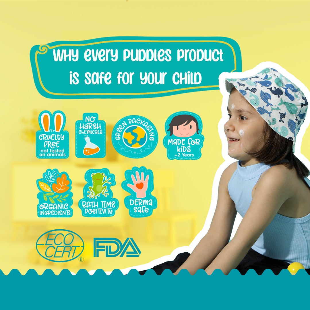 Puddles is specially formulated to be mild and gentle on sensitive skin, making it suitable for children of all ages. Its tear-free formulations ensures a painless experience, allowing your child to splash around and play in the water without any worries.