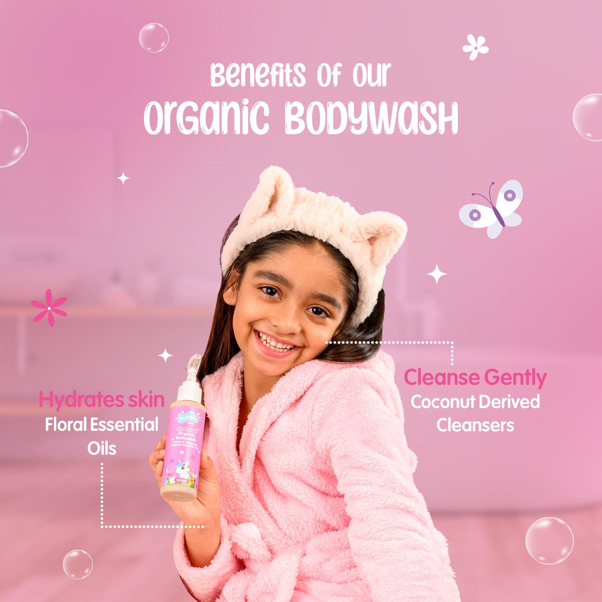 Make bath time magical with our gentle, chemical-free, paraben-free, and sulfate-free body wash. Enriched with coconut cleansers, organic essential oils, and a floral blend of neroli and honeysuckle, this vegan shower gel cleanses and hydrates your child’s skin naturally. Perfect for kids 2+ years.